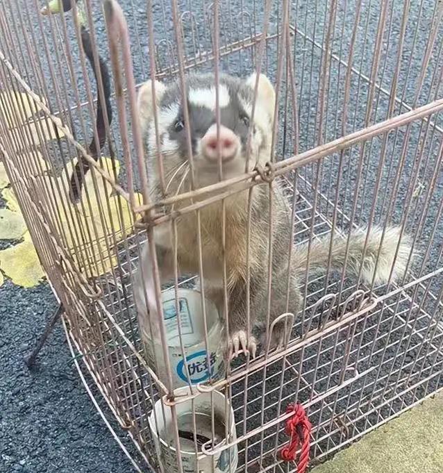 杜先生发现这只鼬獾时,它正悠哉地在草丛里晃荡。毛色灰褐,尾巴长长的,四肢还带着尖爪,看起来有点凶。杜先生好奇心上来,就把它装进笼子带回家,想搞清楚这到底是个啥。